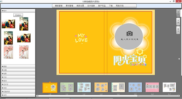 ●用照片书模板举例,进入后台,上边菜单 模板管理-打开模板,打开一个需要修改尺寸的模板(任意一个就可以),如下图示:(注意:请选择宽高比与修改后尺寸宽高比最接近的模板,例如:需要的是横版,请选择横版模板,需要的是竖版,请选择竖版模板,需要的是方形,请选择方形模板,这样可以确保转换后各图层没有变形,无需调整)